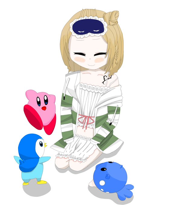 カービィとポッチャマとタマザラシに囲まれるむあん #いばら絵ん