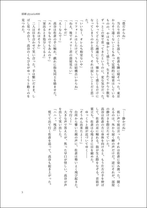 11/28 #熱血ストラグル さくたか新刊サンプル(1/4) 【南3-K24a 僕だよジュディちゃん】にて頒布します。 A5・76P・700円。高谷が佐倉の実家に遊びに行く話です。成人指定ですので、年齢確認にご協力ください。 表紙はなこさん(@q_ninc)にいただきました!