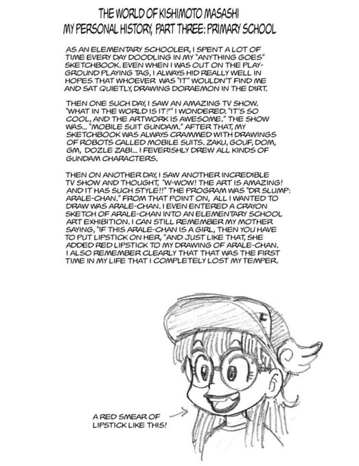 Just a friendly reminder that Kishimoto started out as a fan artist for Mobile Suit Gundam and Dr. Slump