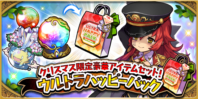 【クリスマス限定!ウルトラハッピーパック】販売! 12月28日(月)14時まで! 究極覚醒に必要な「神核」や、ユニットスキルを強化することができる「知識の大精霊」 さらに「神理のオーブ」が詰め込まれた豪華アイテムパックです! ぜひチェックしてくださいね♪ ※お一人様2個まで #ゆるドラ