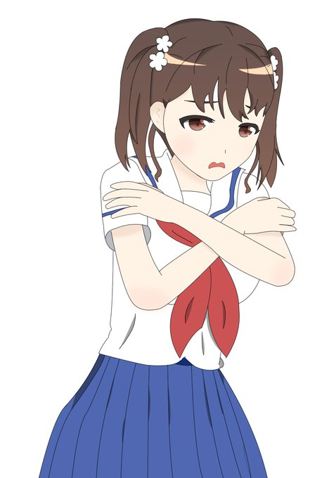 #はいふり #はいふりアート部 頑張れなサイズの自分の胸をを確認しているメグちゃん
