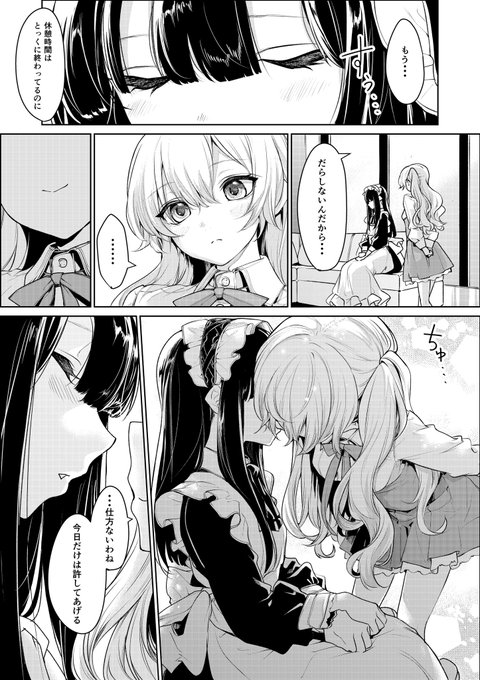 猫耳メイドさんとお嬢様の百合キス(*´-`) #百合の日