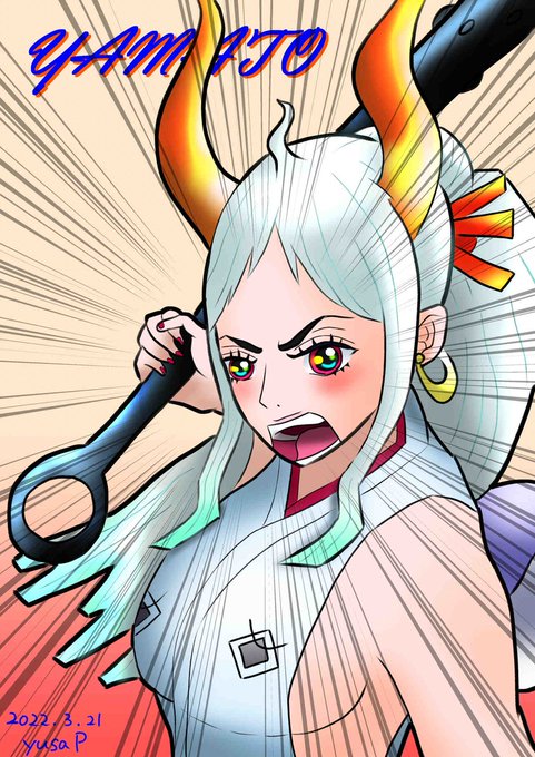 #ワンピース #ONEPIECE #イラスト好きな人と繋がりたい #イラスト練習中 ONEPIECEのヤマト。 プライズのフィギュアを元に描いてみました。袴の塗りはけっこうよくできたと思います。髪のグラデも好き。未だにカイドウとの親子関係を疑うwww ヤマトかっこいい。