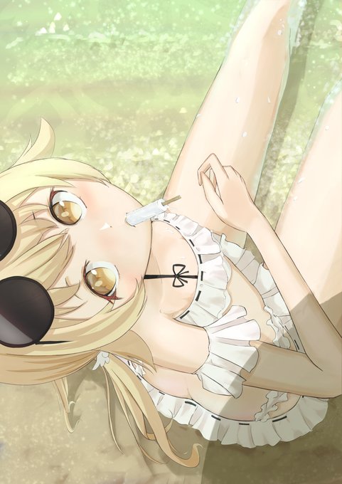 暑いので口に咥えているアイスを先生にくださいな。 #ブルアカ #ブルーアーカイブ #阿慈谷ヒフミ