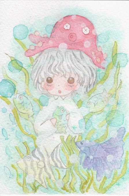 水彩色鉛筆以外に、透明水彩、アクリルガッシュ、様々な画材を試したと思います✨今はアクリルガッシュ押しの作品メインになってます♪