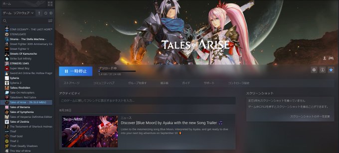 密かに予約してたテイルズのプリロード来てんじゃーん スパロボ来るまでに1周できればいいなぁ