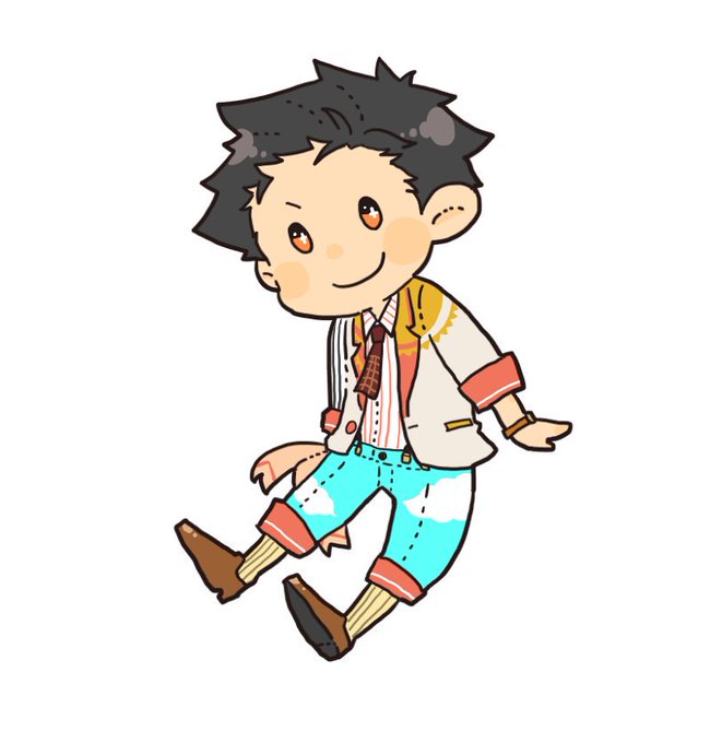 お天気お兄さんアクキー、この絵でズボン部分透過にして青空で柄を作ろうっていうアクキーになる予定