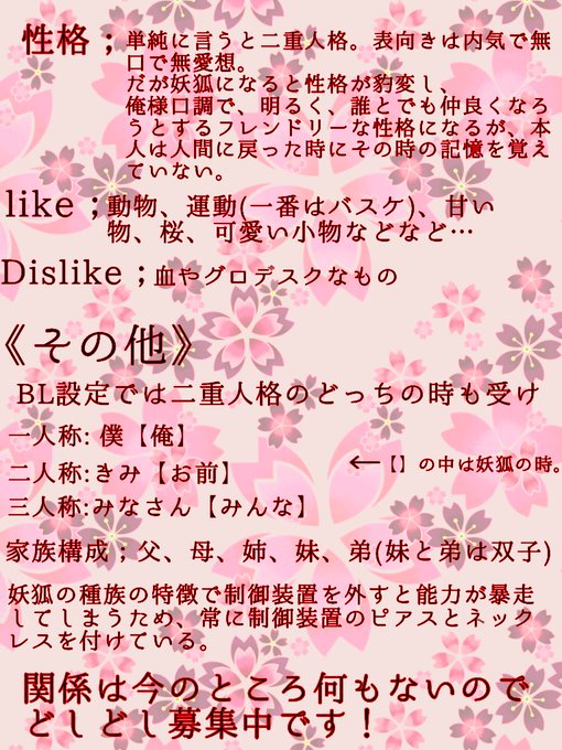 キャラシ投稿めっちゃ遅れちゃってすみません………💦3年B組、妖狐の蓮見朔夜くんです!よろしくお願いします!!!