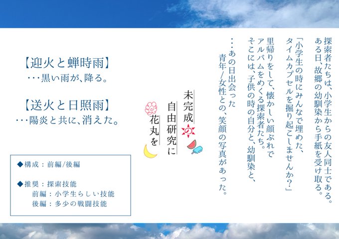 香月 朔弥(mitoさん)、空花 奏汰(リアさん)、贄川 桜白(お茶)、花蜜あかり(黒猫さん)