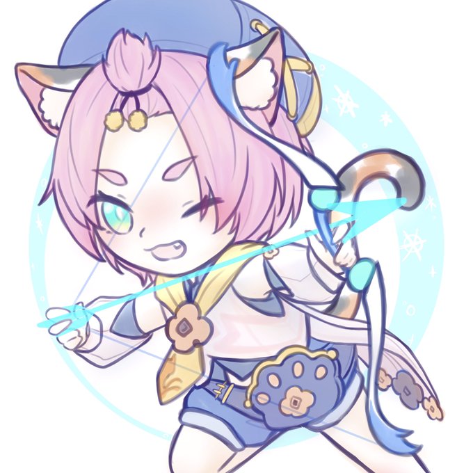 猫の日にゃーฅ^•ω•^ฅ🐾 過去絵に書き足しただけやけど(笑 #ねこの日 #原神 #七七