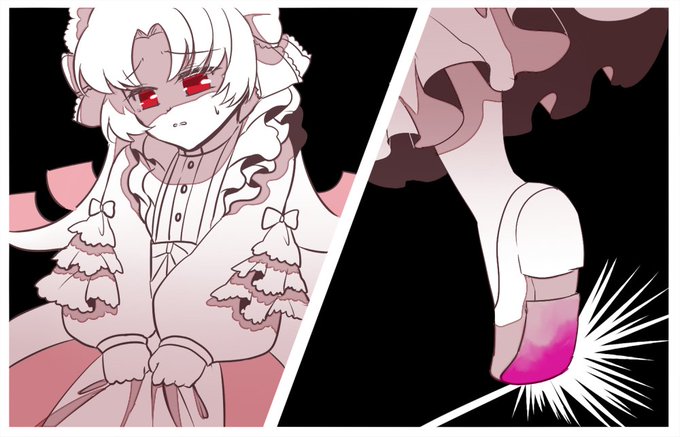 ありすもチェシャもゆがありの影響受けまくりなのよ(赤いドレスの黒髪アリス+目元が見えないチェシャ猫)