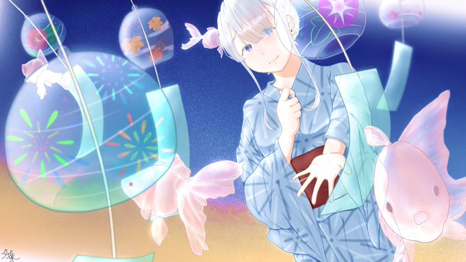 夏のイラスト4年分。成長を感じる