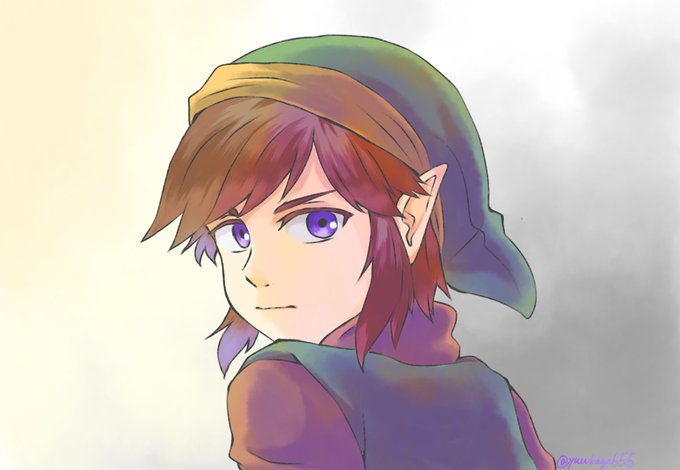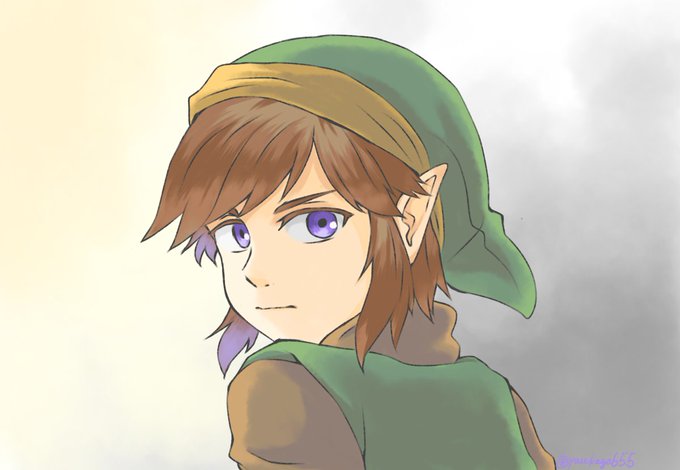 塗り途中の初代リンクらくがき 公式絵だと瞳の色分からないけど個人的に紫なら茶髪に合うんじゃないかと思って紫にしてる