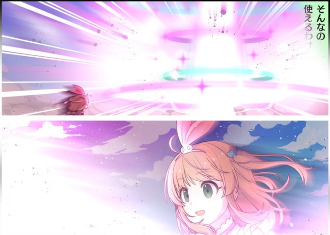 この画像で、上のコマでジュエルが放射線上に散らばり、下のコマで秘石がリノの横を流れて行くクソコラが欲しい… 自分にはスキルが無いのでお頼み申す #プリコネR