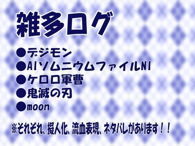 雑多ログ〈2022〉 #AI:ソムニウムファイルニルヴァーナイニシアティブ #デジモン #ケロロ軍曹 #鬼滅の刃 #moon #digimon https://t.co/jZArzlkpFU