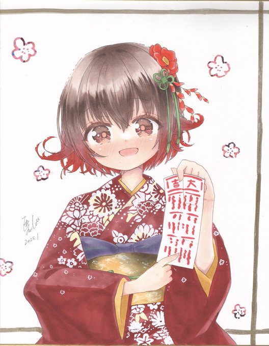 色紙1枚だけ追加 晴れ着時雨 #1日1絵ちま