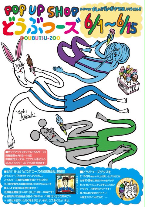 6月1日からはヴィレヴァン新宿ルミネエスト店で「どうぶつーズPOP UP SHOP」です!数量限定缶バッチや数量限定Tシャツあるよ! @VV_EST