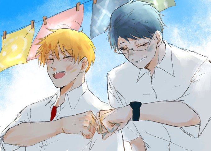 @S_0_C_TL ひとやが高校でよくお話しさせて頂いてるのかな〜ってお二人が、「ひそく」くんと「ひなた」くんで偶然「ひ」から始まる三文字の名前にニコニコしたので描きました😌ファンアートです