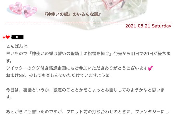 『#神使いの蝶は誓いの聖騎士に祝福を捧ぐ』のタグをつけて感想をツイートしていただいた方を、お礼SSにご案内します。