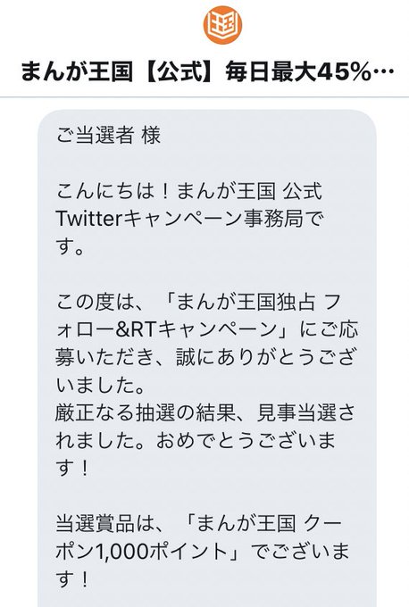 まんが王国【公式】(@manga_okoku)様のキャンペーンにて、まんが王国クーポン1000ポイント当選しました📕✨