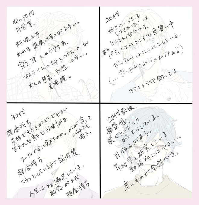 好きな要素を詰めた殿方を描いたので、 好きなCP組み合わせつくってみたり、個々でこの人好きとかあれば教えてくださいね♪