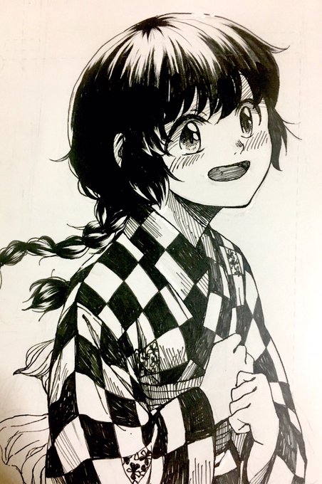 お祭りの時は神楽舞を奉納する巫女役を任されている。今作品は巫女姿の神楽舞の様子を描いたもの。