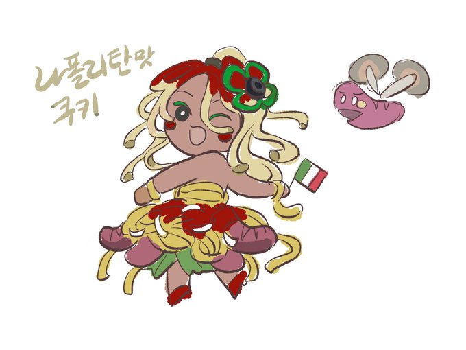 쿠키런 디자이너분들 파스타맛쿠키 그리기를 보고 20분만에 그린 나폴리탄맛 쿠키