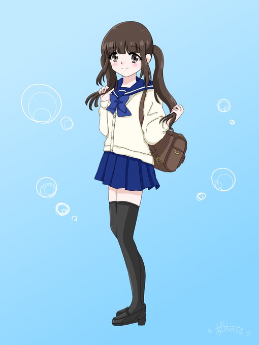 春に撮った自分の写真をモデルにしました( ◜ᴗ◝)なので珍しく黒ニーソ…