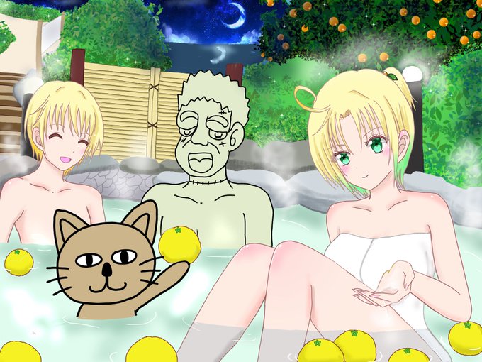 今日は冬至なのでゆず風呂のイラストを描きました☺️♨︎😌🍊最近寒いので皆さん体調管理には気をつけてください(^^;)それから皆さんのキャラも嫌でなければ描かせてください🥺🙇
