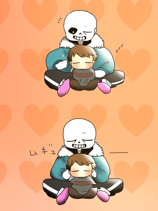 @ozugana ガーナさんのフリスクを借りました!一度自分のサンズとガーナさんのフリスクをいちゃいちゃさせたかったんです!!((変態発言))