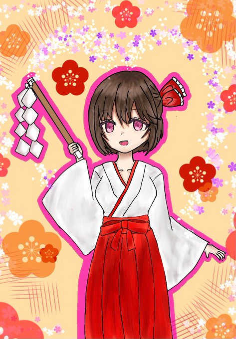 妹にデジタルの使い方教えてもらって描いた絵 #女の子 #巫女 #デジタルイラスト