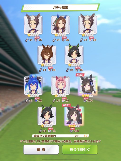 育成とサポカ、10連一回ずつ引いたらRTTTが一緒に出てきたんだけど。出来過ぎでこわい #ウマ娘