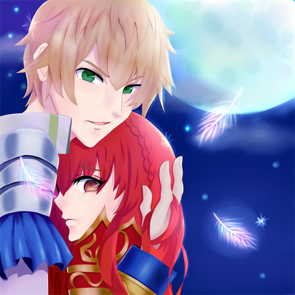 とりあえず完成ー 『お守りします!』と強がるガネを男らしく守ってやるクライヴ!陰影レイヤー有り無しの2種類UPだお 星が雪に見えるのはご愛嬌(汗)