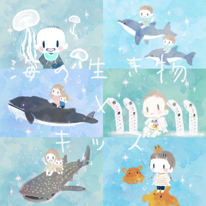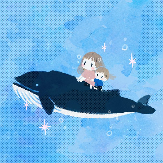 ヒゲクジラ×キッズ special thanks @h_h_h_h21132518 ✨ #海の生き物 #イラスト