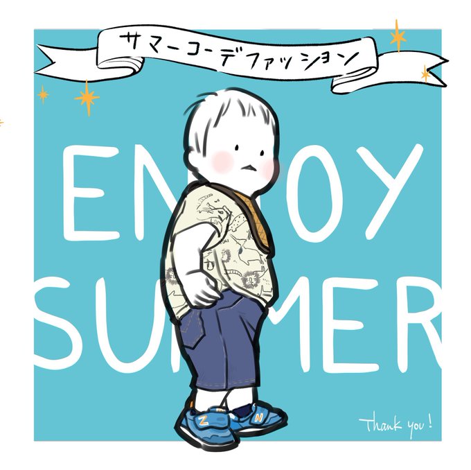 カジュアルサマーコーデの息子くんを描かせて頂きました✍️