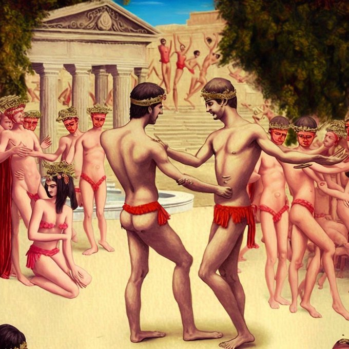 ジムノペディ(ギムノペディアの少年の裸の踊り、それを盗み見る貴族の女、と指定したがとんでもなくおかしい提案をしてきたai)