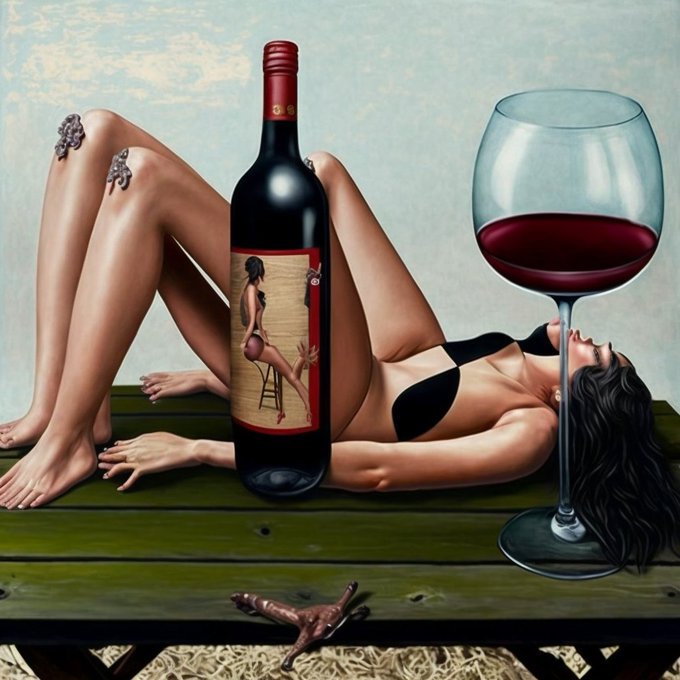 タイムラインに膝を抱えた人の背を模したボトルが流れてきて、赤ワインにしようと試行錯誤。うまくいかない!変態(ai)