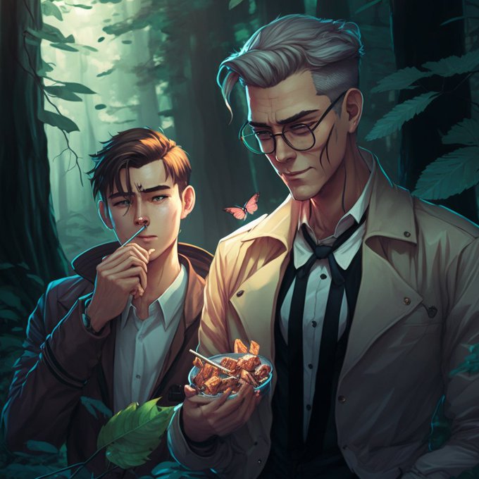 aiの想像した なすなかにし (一人メガネ指定するとどうしても二人ともになってしまうのと、中年男指定するとなぜかおじいさんになる)