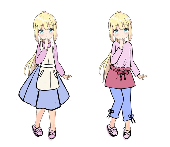 家畜屋の娘、はづきちゃん。 服装迷っている。可愛さを重視するか、職業観を重視するか…。