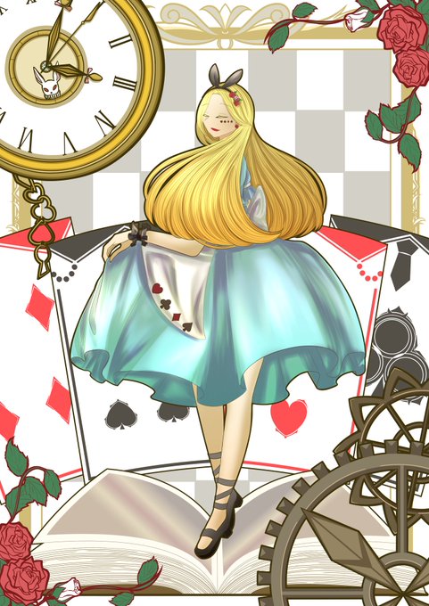 『踊るアリス』 アリスの絵が描きたくなったから衝動描き。 画像解像度大きくしすぎたから、データサイズめっちゃ大きいんだ...。