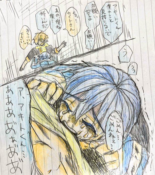 彰カイ✨ 見捨てられ不安から情緒が楽しいことになってるビビカイ それにビックリしてる彰人くんです✨ 2枚目は首絞められた跡を見てご機嫌なビビカイです✨