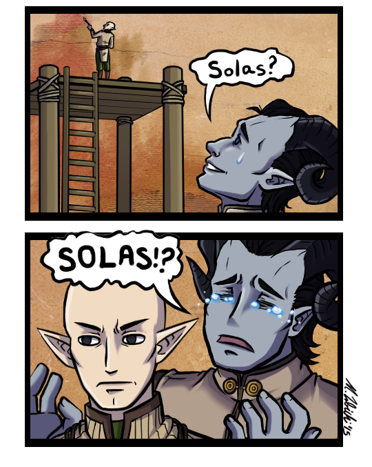 For the longest time, Donald and I assumed his game file was glitched because Solas never wanted to talk. Nah, the egg just hated his Inquisitor. #dragonage #comic