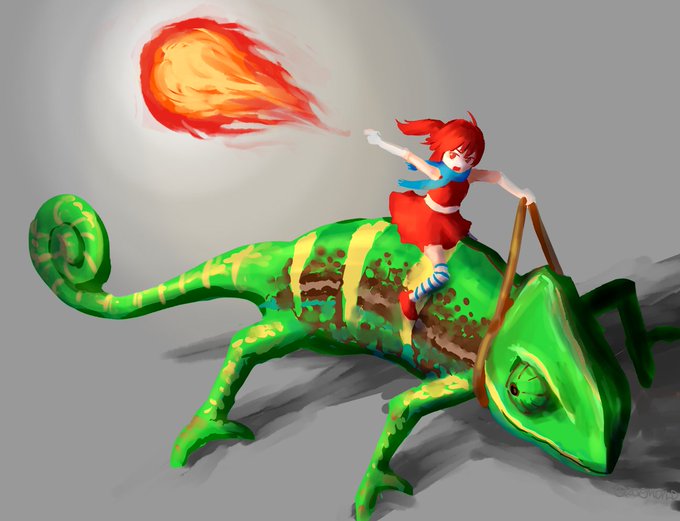 お題は『青』『マフラー』『四つん這い』 青いマフラーの魔法幼女とよつんばいのカメレオン。 思いつくままに描いたのである。 厚塗りに挑戦したのである。 #まる週間