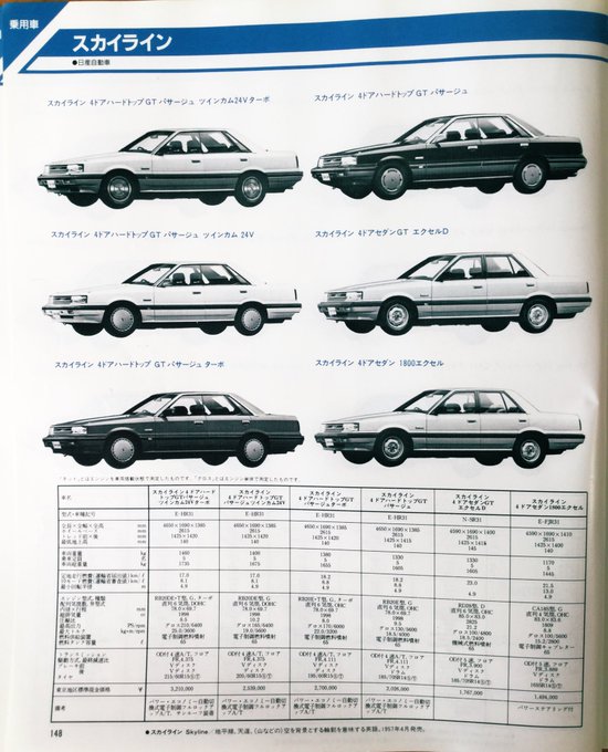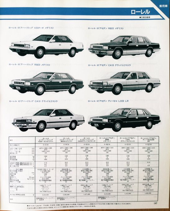 昭和60年10月発行「自動車ガイドブック」の乗用車紹介より日産車。『ローレル』も8台目で生産終了しているのですね。いろんな規制の壁は高く無情なんですね💦 #昭和レトロ #旧車 #サンタナ #ローレル #スカイライン #ブルーバード