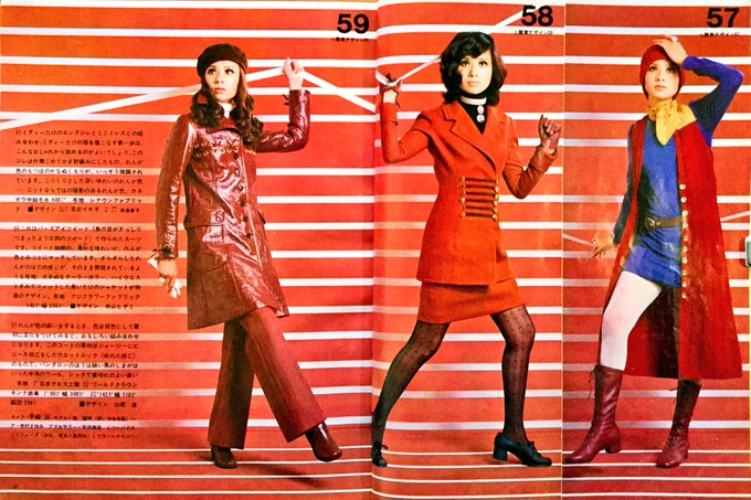 昭和45年「講談社」出版の「若い女性」11月号より「れんが色BRICK」です。赤のもつ情熱と茶のもつ渋さが、れんが色だそうです✨ #昭和レトロ #ファッション