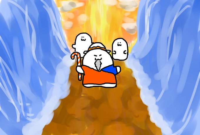 前にモーゼごっこしてるジュ―二―ちゃん(@Joonietopia)がかわいかったから初めてイラストのほうでモーゼの海割りジュ―二―ちゃんを描いてみた(ˇωˇ)手に持ってる杖はキャンディです