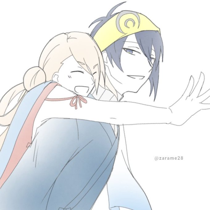 くりさに要素がほぼ皆無で申し訳ないのですが、飛び入り参加失礼します! 白山チャレンジ惨敗したさにわと放置するのが一番だと学習した伽羅の図 この距離感を許してくれる大倶利伽羅は尊い #大倶利伽羅君の腰布活用術