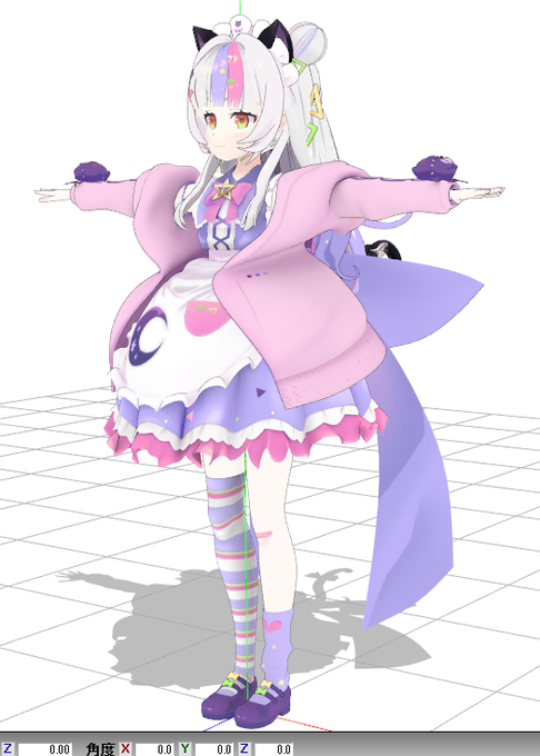 全盛り。あとモーフ確認して色々数値確認して問題なければblenderでAスタンスにして出力しなおして剛体ジョイントつけて揺らしてみてめっちゃ貫通するならblenderに戻って直して問題ないなら完成で髪2前髪2上着2の8種類に分けて終わり。猫耳としっぽは前のゴスの流用です。