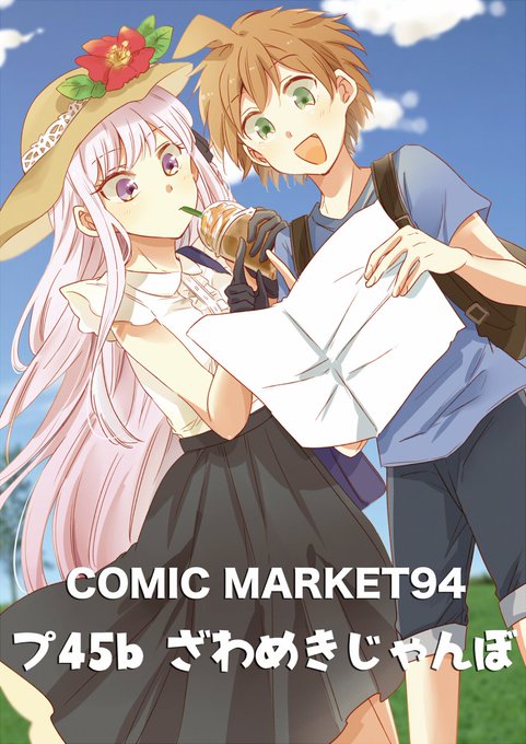 C94お品書きです!1日目東5ホール、プ45bざわめきじゃんぼです!よろしくお願いします~!!当日のポスターはお隣のぺね屋さんとテーマを合わせています!是非当日並んだところ見に来て下さい~╰(*´︶`*)╯