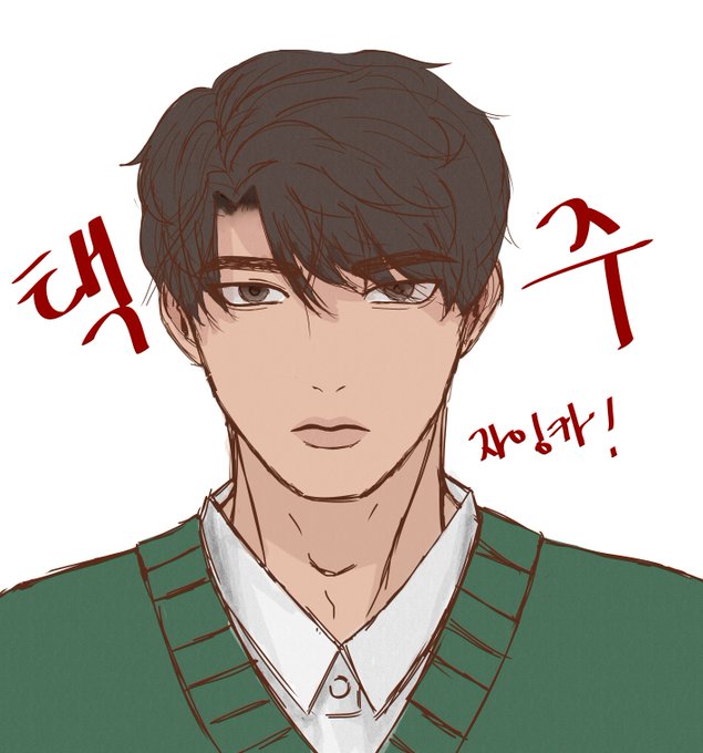 아까 그리던 그림에서 택주 얼굴이 희끗희끗 보여서 택주로 수정ㅋㅋㅋㅋ 늘 말해왓지만... 대갈치기 밖에 못해서 증명사진 앵글로 밖에 못그리는ㅋㅋㅋㅋㅋㅠ 량님이 짙은 녹색 니트 입혀달라구 해서 어깨밖에 안나오지만 입혓다요~!